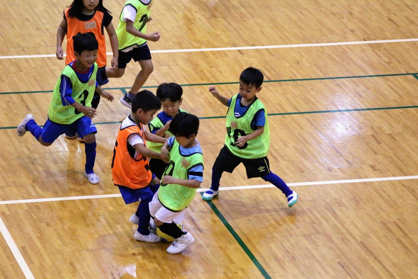 子どものゲームと大人のゲームを交互に行い、最後は子ども全員が指導者チームに挑みました。
